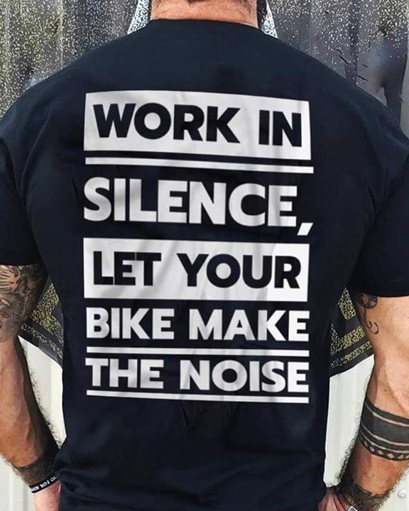 Work In Silence Let Your Bike Make The Noise Shirt (back Side)