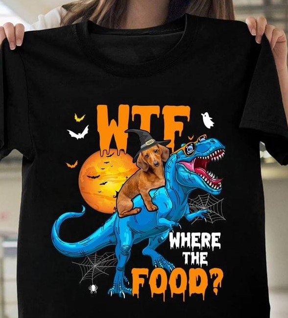 Wtf Where The Food? Blue Dinosaur Dachshund Dog Moon Halloween Shirt