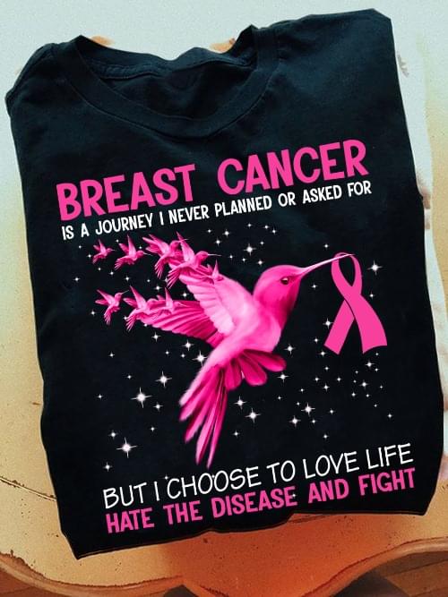 Breast Cancer Is A Journey I Never Planned Or Asked For But I Choose To Love Life Hate The Disease And Fight Pink Birds Ribbons Shirt