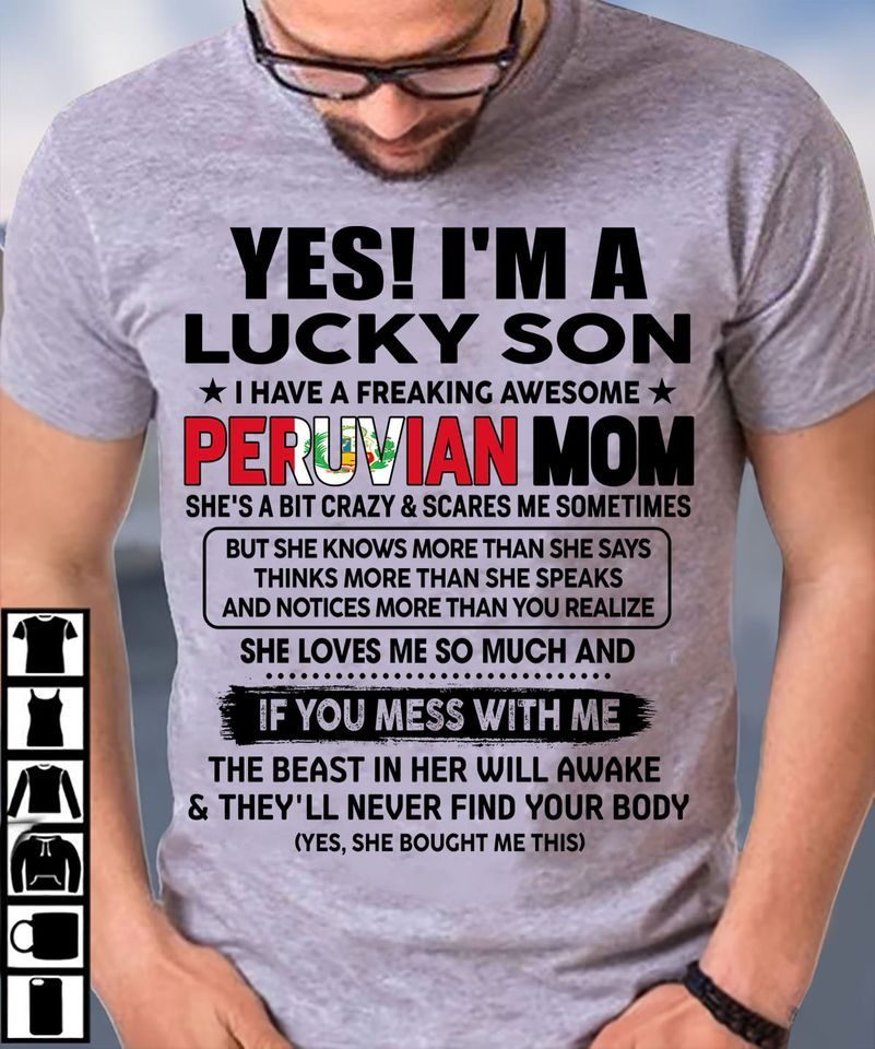 Yes I Am A Lucky Son, I Have A Freaking Awesome Peruvian Mom Shirt