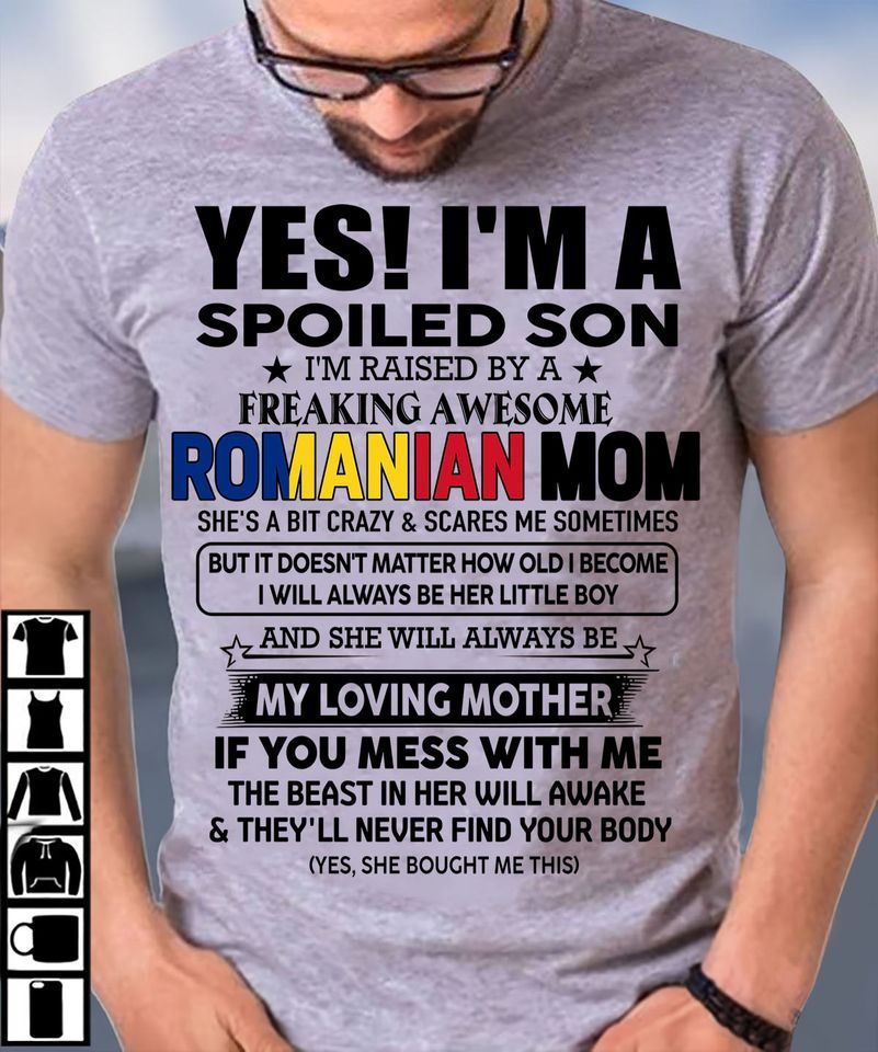 Yes I Am A Spoiled Son, I Raised By A Freaking Awesome Romanian Mom Shirt