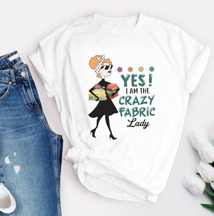 Yes I Am The Crazy Fabric Lady Modern Girl Holding Fabric Shirt