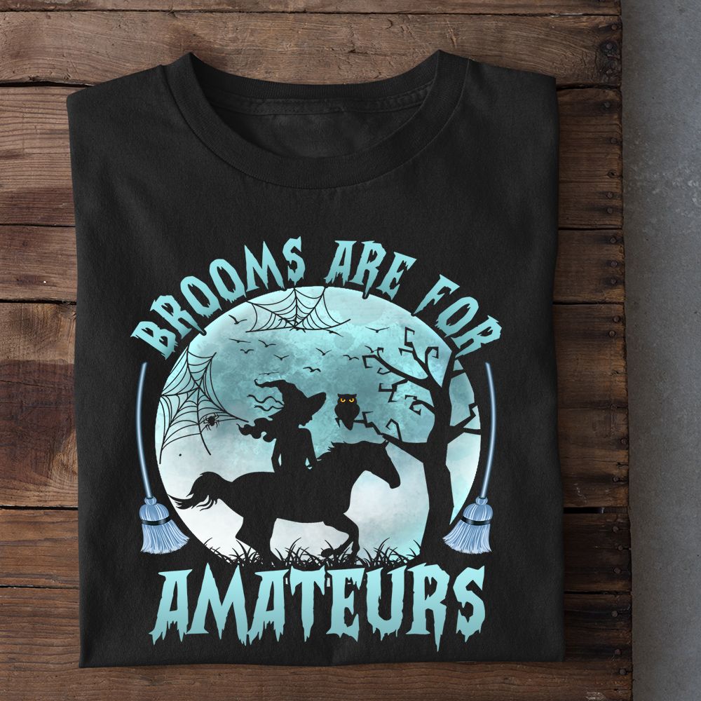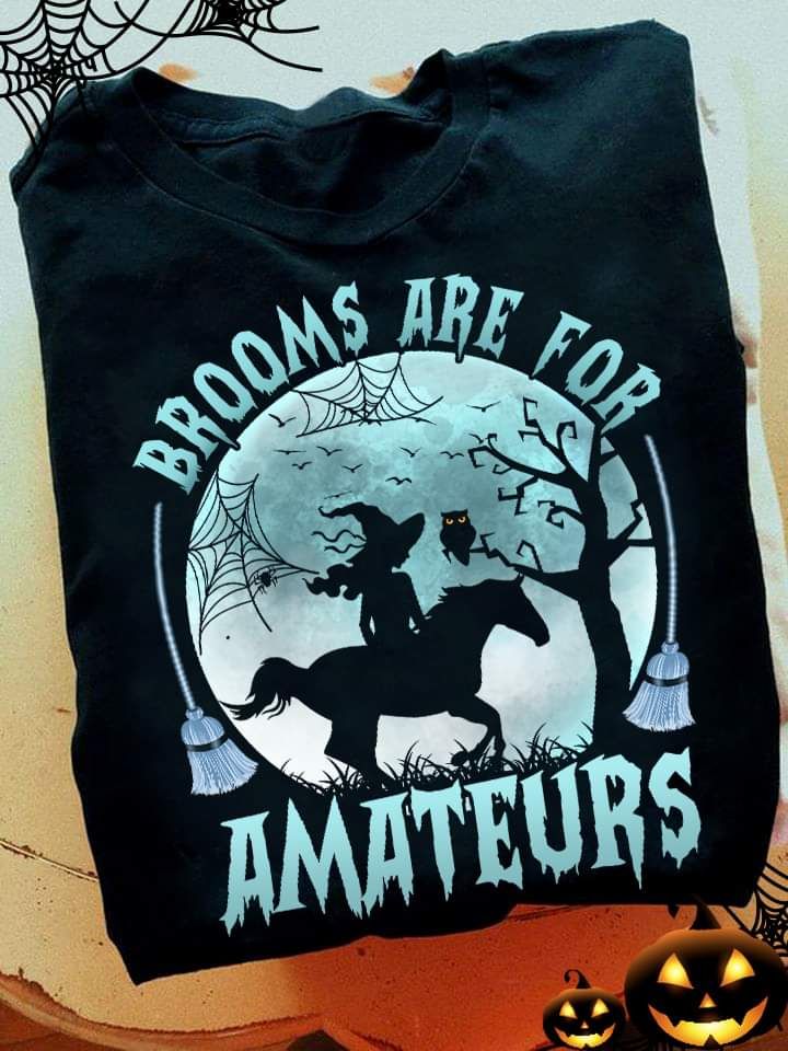 Brooms Are For Amateurs, Girl And Horse Halloween Shirt