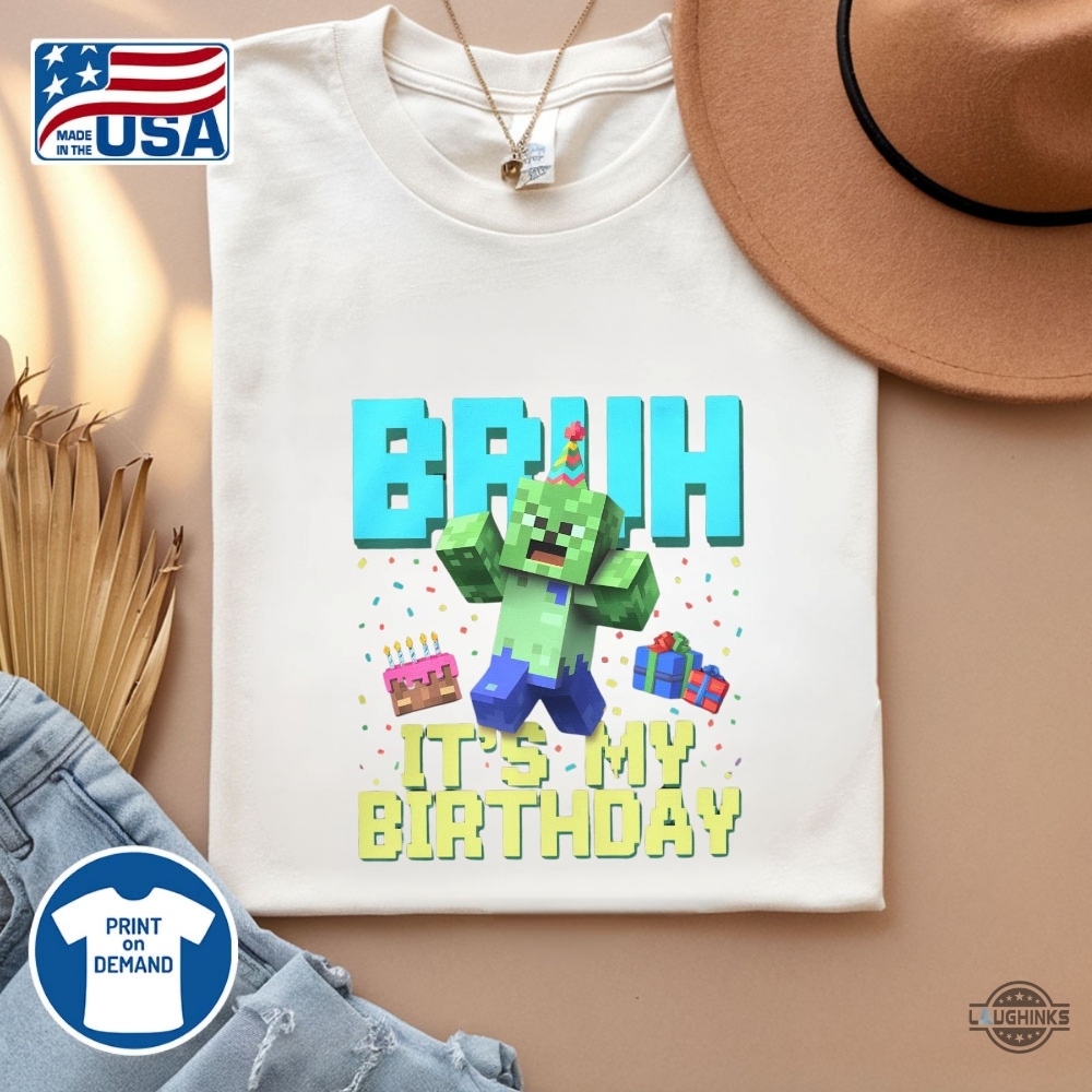 Bruh Its My Birthday Minecraft Shirt Gift For Boy Girl Men Women
