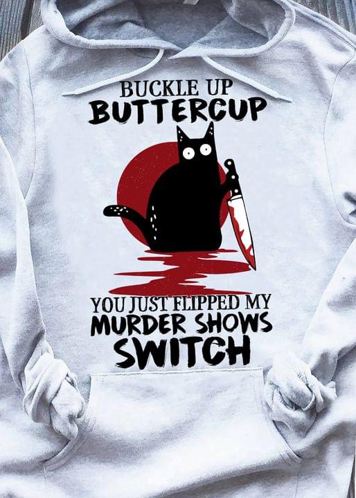 Buckle Up Buttercup You Just Flipped My Murder Shows Switch Blood Black Cat Halloween Shirt
