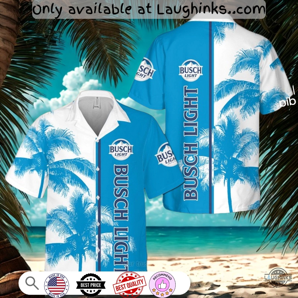 Busch Light Blue And White Hawaiian Shirt