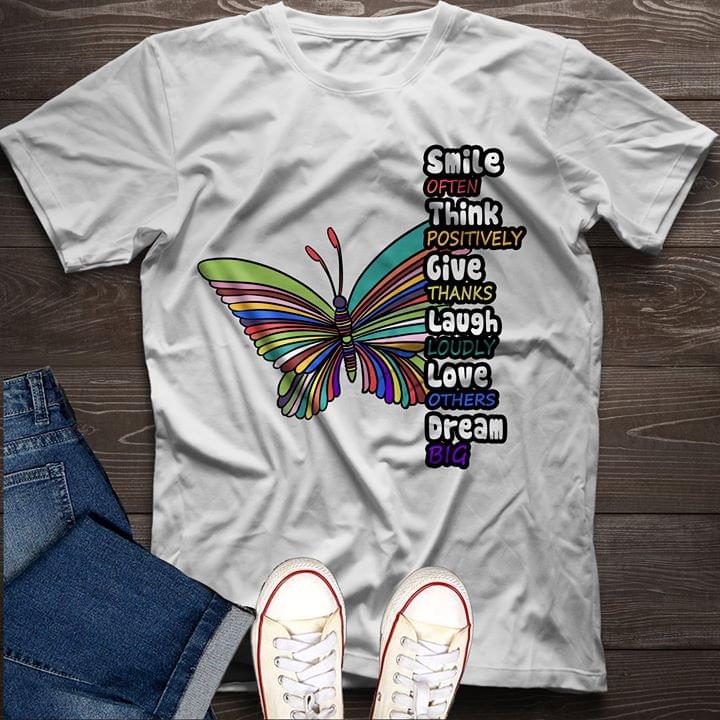 Butterfly Smile Often Think Positively Give Thanks Laugh Loudly Love Others Dream Big Shirt
