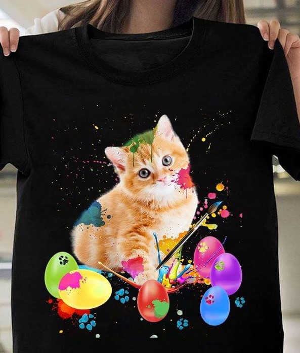 Cat Painting Eggs Happy Easter Shirt