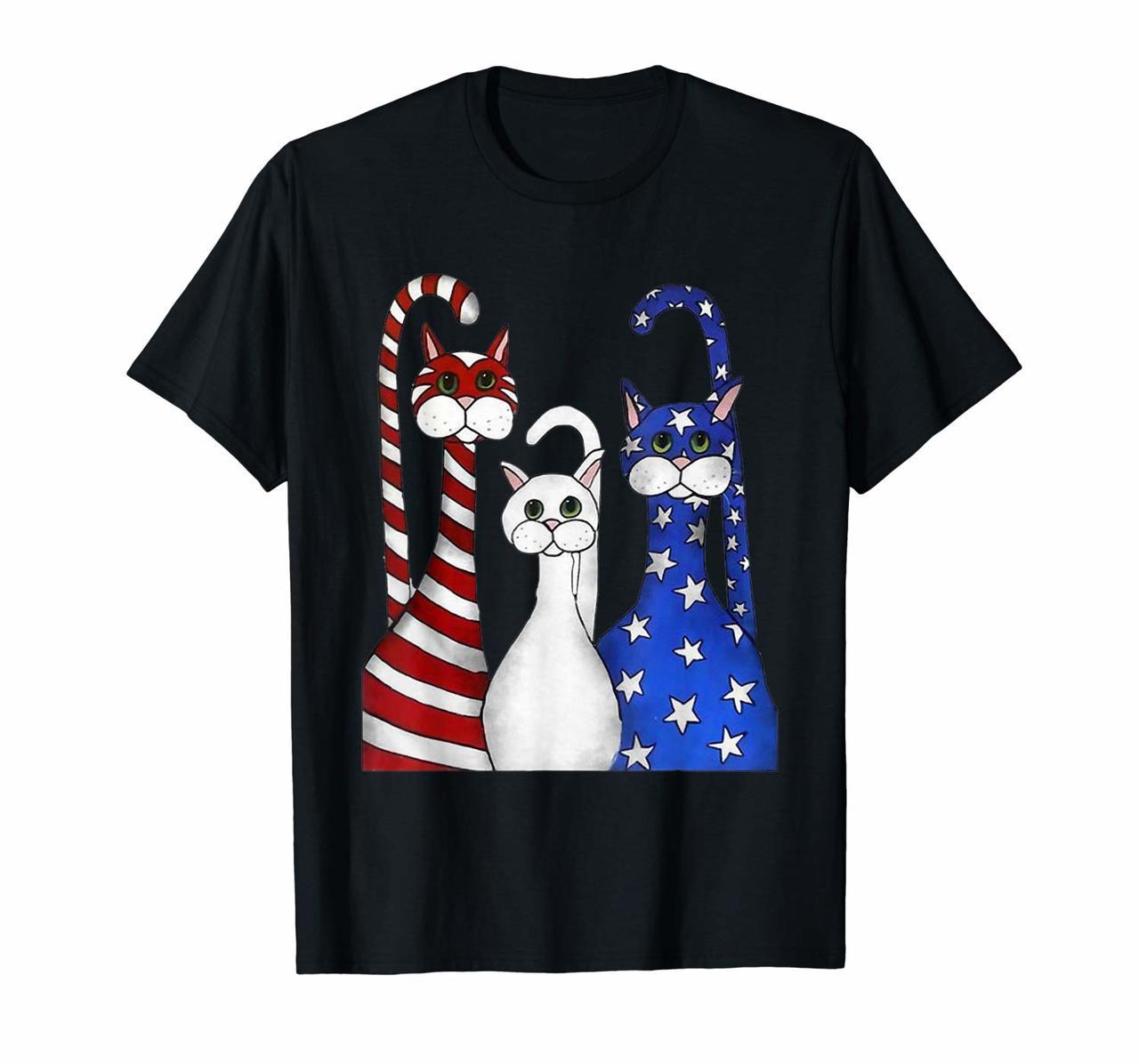 Cat Red White Blue American Flag T Shirt Patriotic