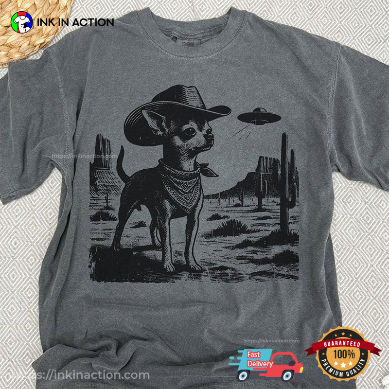 Chihuahua Cowboy And Ufo Wild West Western Comfort Colors Tee