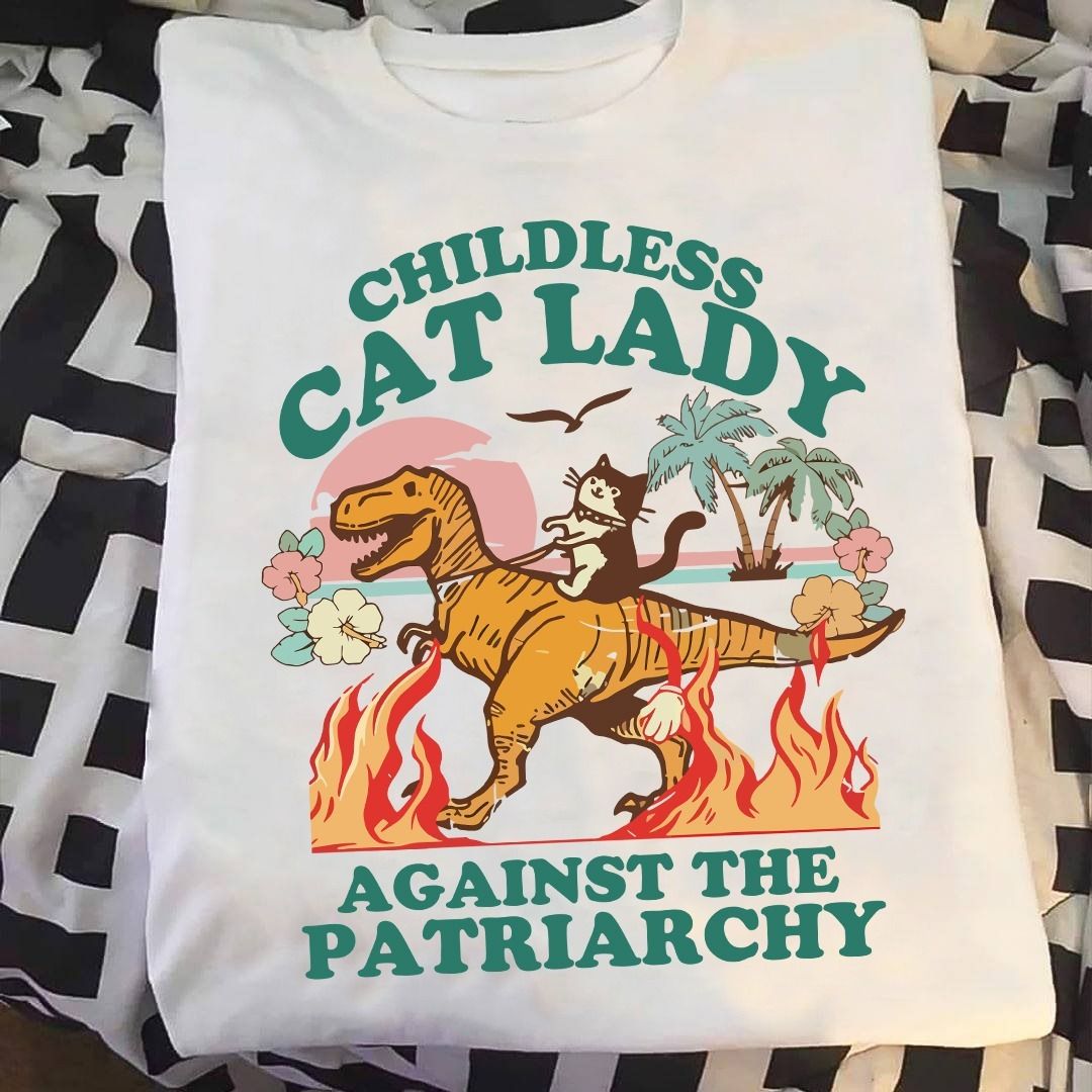 Childless Cat Lady Against The Patriarchy, Vintage Cat Riding Dinosaur Shirt
