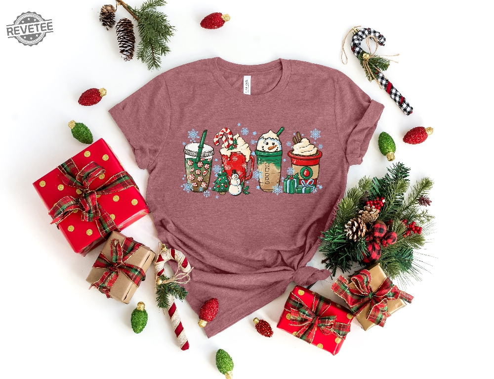 Christmas Coffee Shirt Peppermint Iced Latte Snowmen Sweets Snow Warm Cozy Winter Women Shirt Christmas Latte Shirt Unique