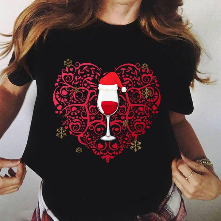 Christmas Glass Of Red Wine Heart Shirt