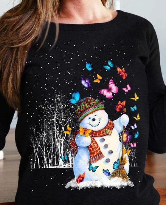 Christmas Snowman Butterflies Shirt