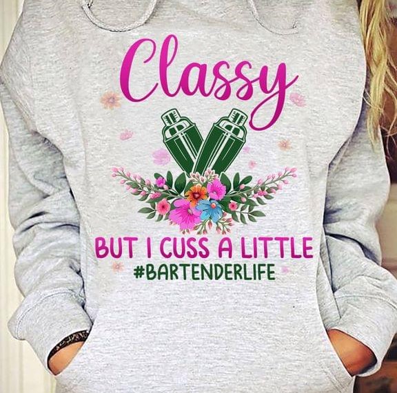 Classy But I Cuss A Little #bartenderlife Shakers Flowers Shirt