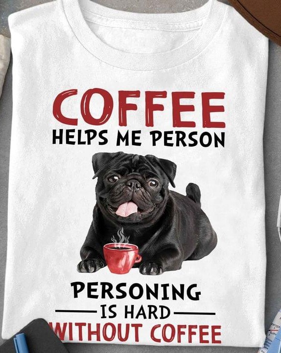 Coffee Helps Me Person Personing Is Hard Without Coffee Bulldog Drinking Coffee Shirt