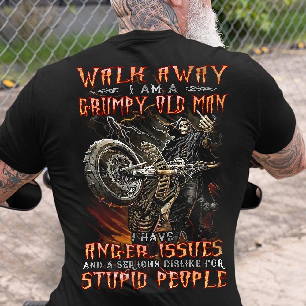 Cool Biker Shirt, Walk Away I Am A Grump Old Man, I Have Anger Issues And Serious Dislike For Stupid People