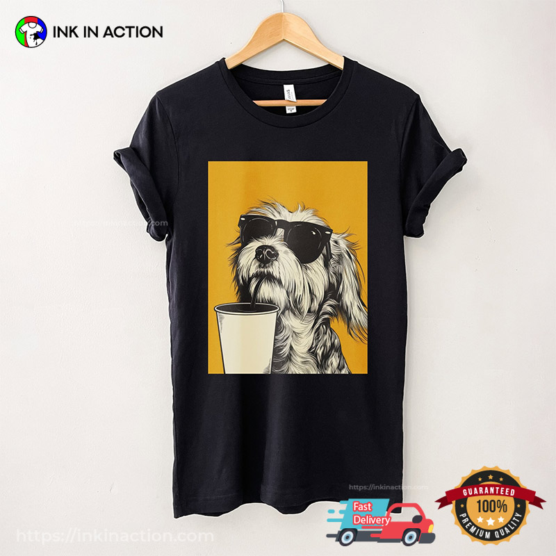 Cool Dog With Sunglasses Drinking Graphic Tee