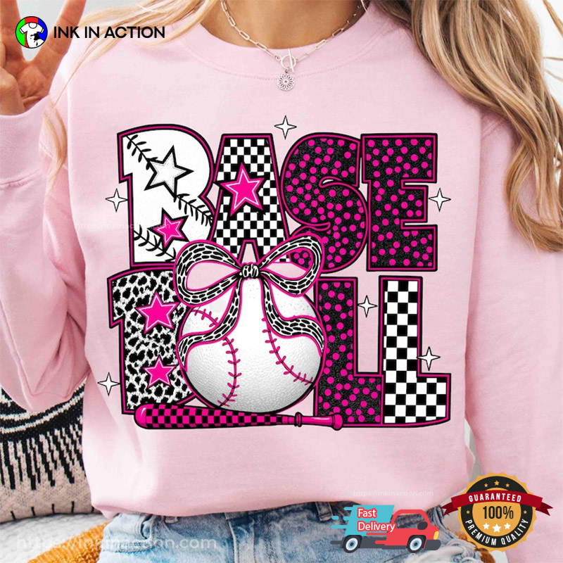 Coquette Bow Baseball, Cute Baseball Mama T-shirt