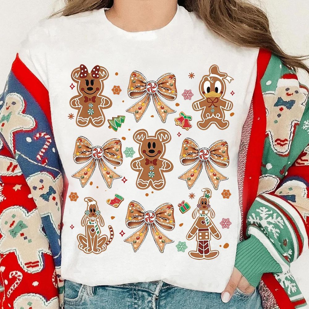 Coquette Bow Gingerbread Mickey And Friends Disney Christmas Vuitino Shirt