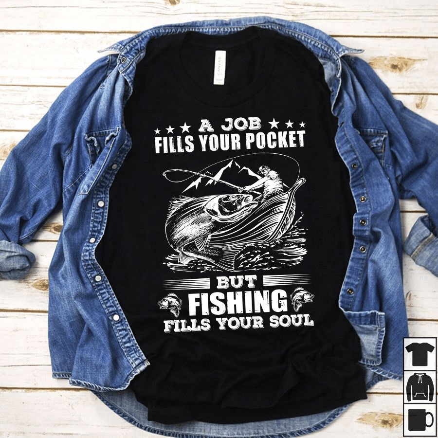 A Job Fills Your Pocket But Fishing Fills Your Soul T-shirt