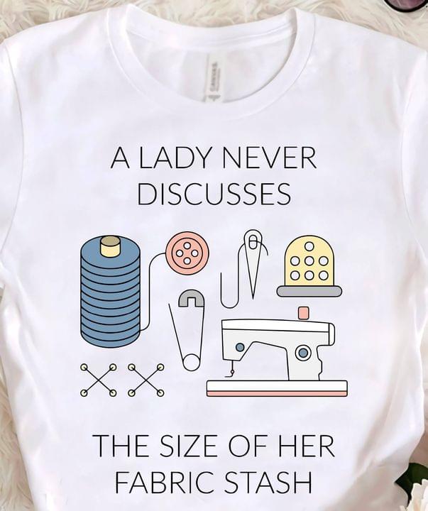 A Lady Never Discusses The Size Of Her Fabric Stash Sewing Machine Tools Shirt