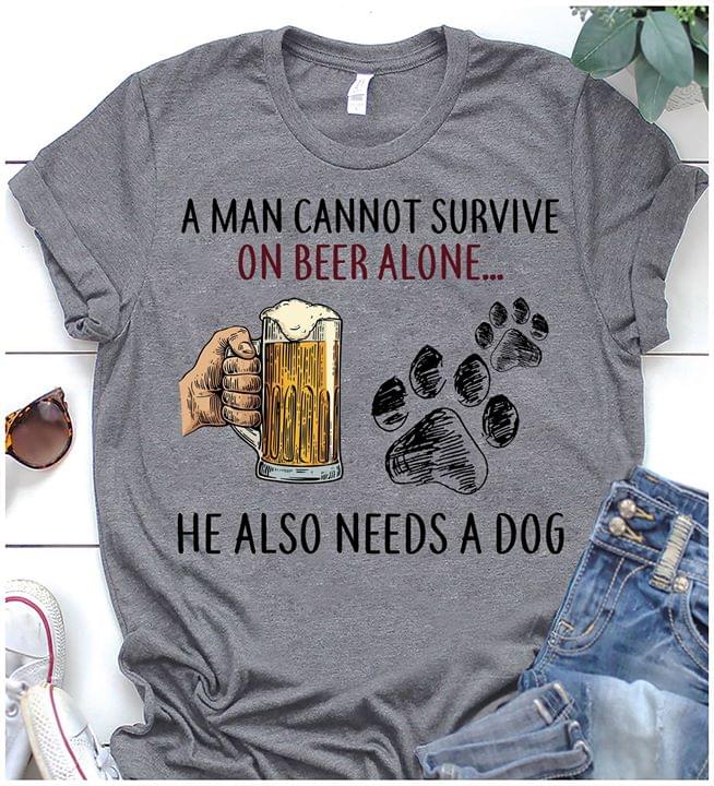 A Man Cannot Survive On Beer Alone He Also Needs A Dog Shirt