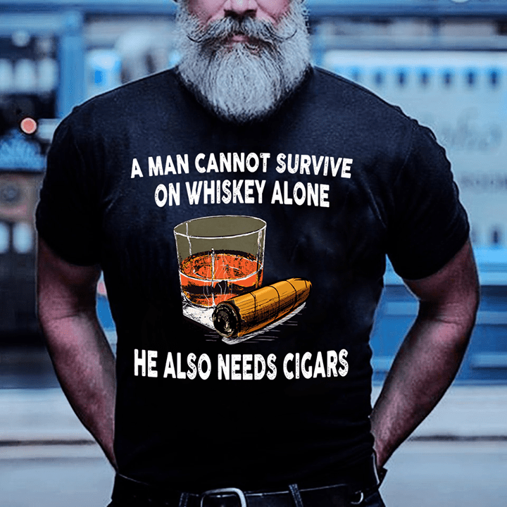 A Man Cannot Survive On Whiskey Alone He Also Needs Cigars Shirt