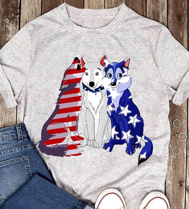 Cute Wolfs Mixed American Flag Shirt