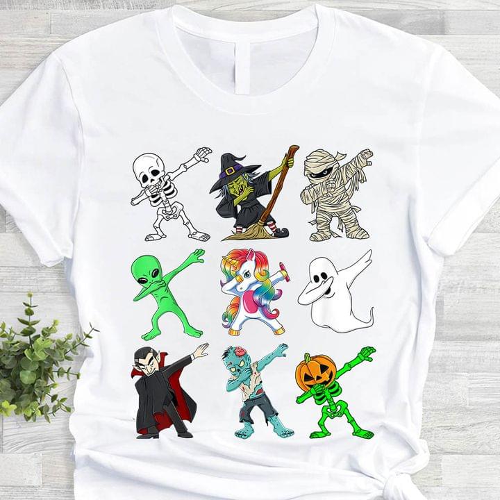 Dabbing Skeleton Witch Mummy Alien Unicorn Ghost Dracula Zombie Pumpkin Shirt