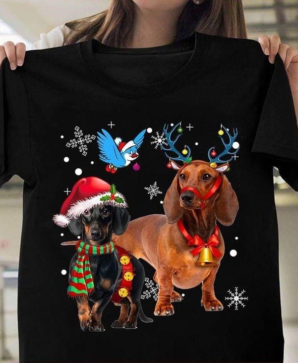 Dachshund Dogs Birds Snow Christmas Shirt