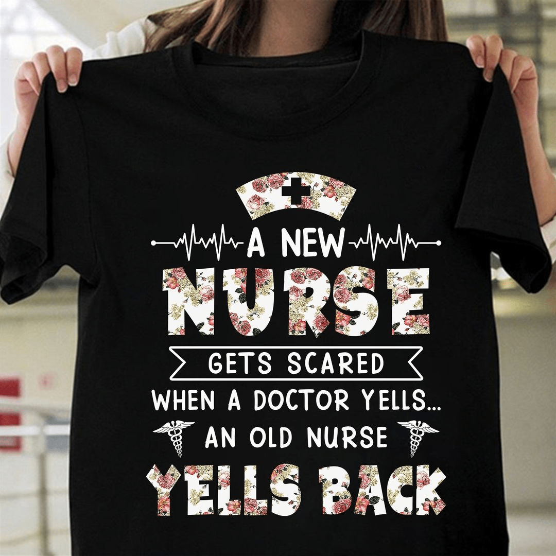 A New Nurse Gets Scared When A Doctor Yells An Old Nurse Yells Back T-shirt
