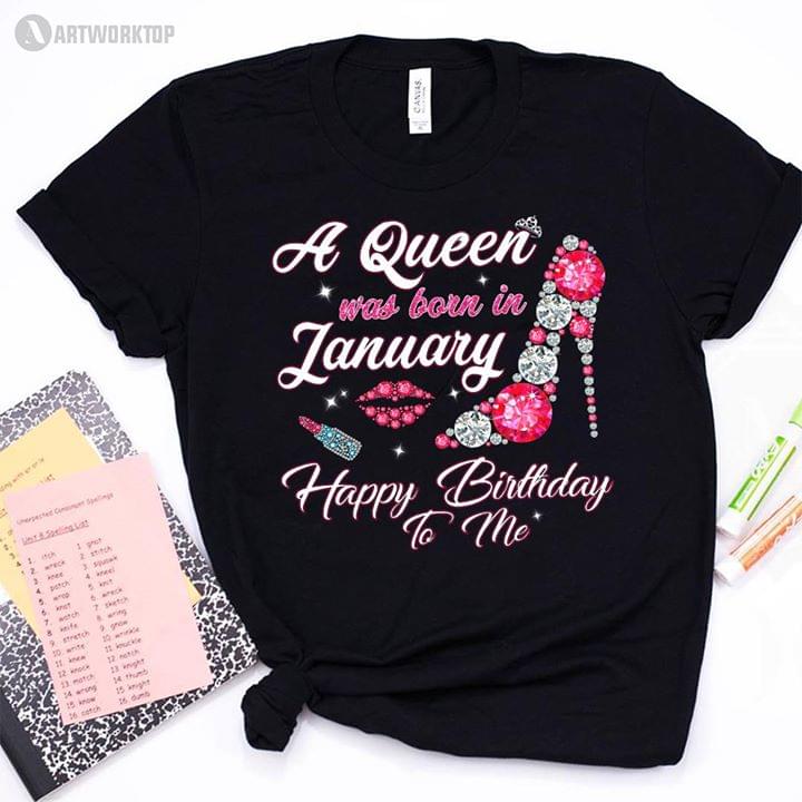 A Queen Was Born In January Happy Birthday To Me Shirt