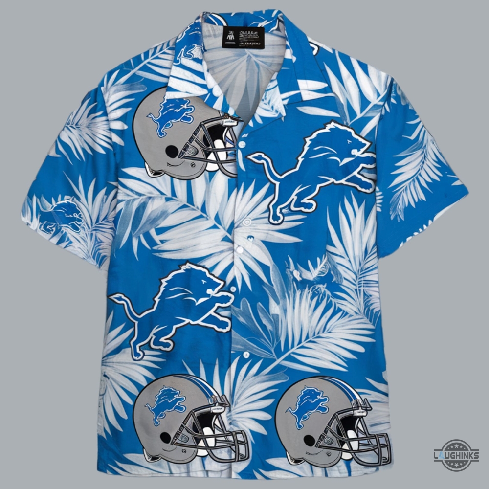 Detroit Lions Helmet Tropical Leaves Hawaiian Shirt