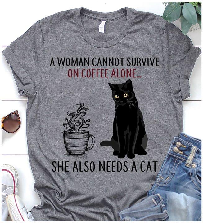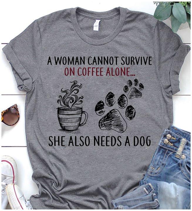 A Woman Cannot Survive On Coffee Alone She Also Needs A Dog Shirt