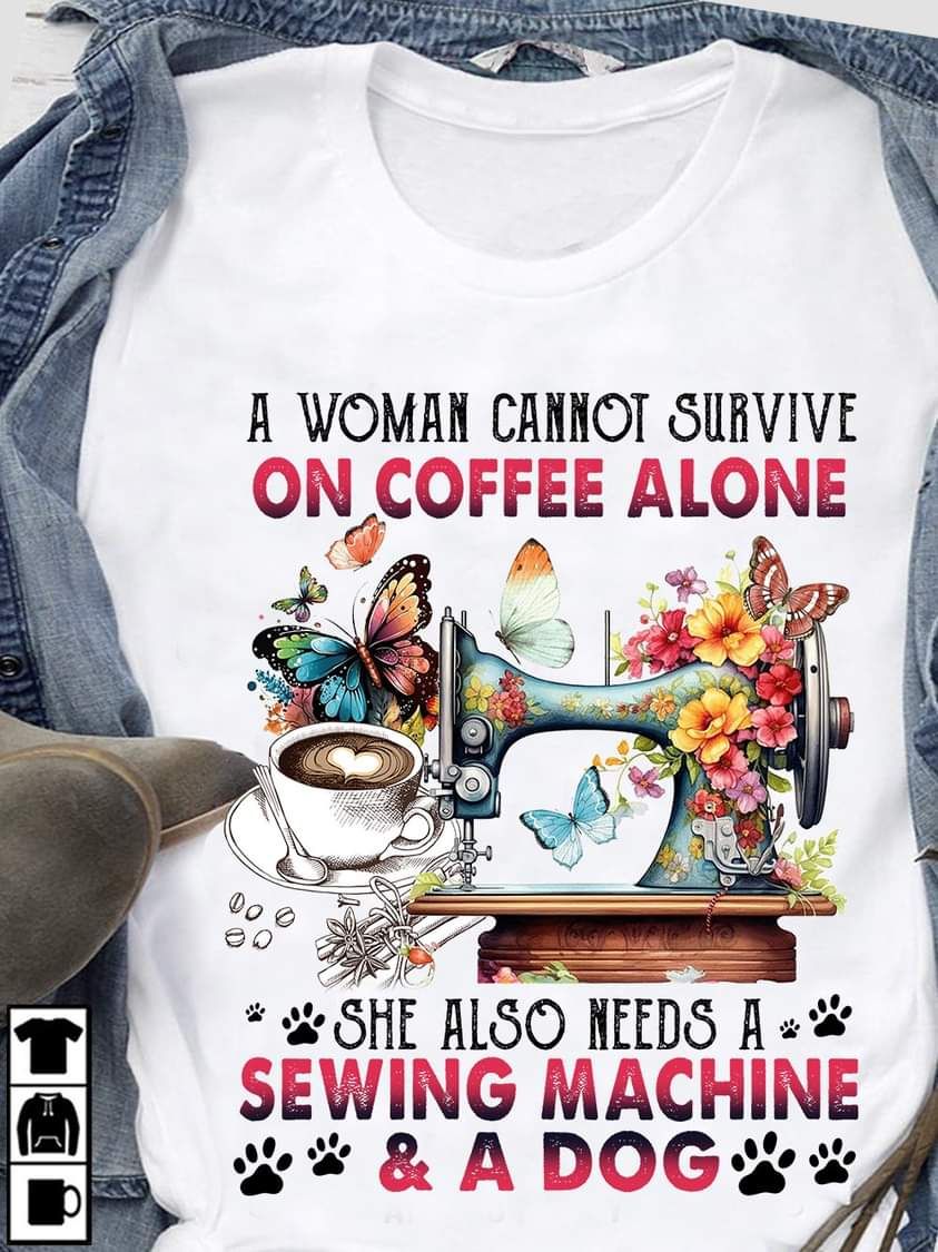A Woman Cannot Survive On Coffee Alone, She Also Needs A Sewing Machine And A Dog Shirt