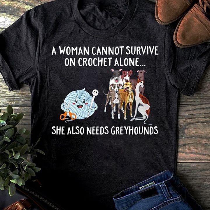 A Woman Cannot Survive On Crochet Alone She Also Needs Greyhounds Shirt