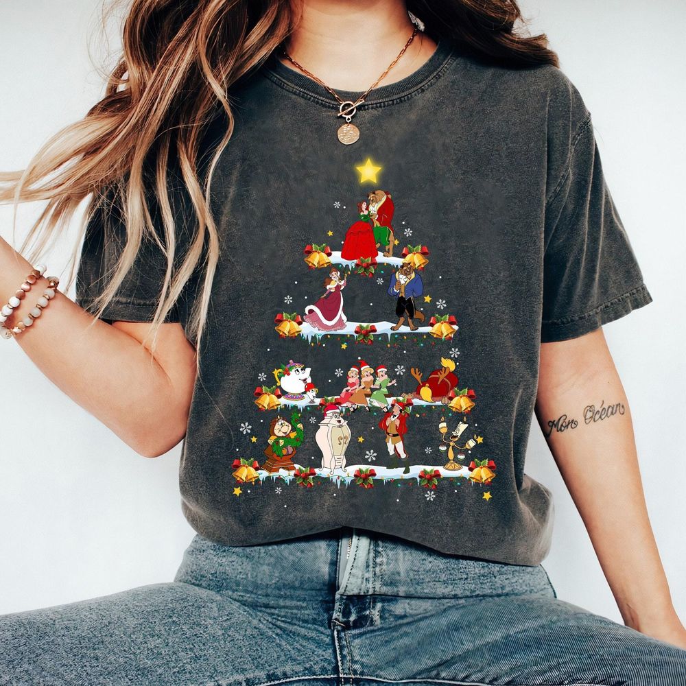 Disney Beauty And The Beast Christmas Tree And Lights Vuitino Shirt