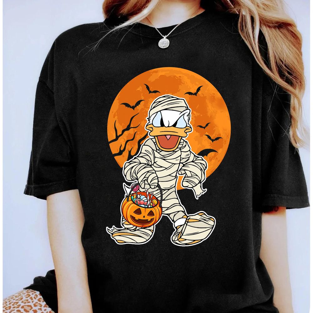 Disney Donald Duck Mummy And Pumpkin Lantern Halloween Vuitino Shirt