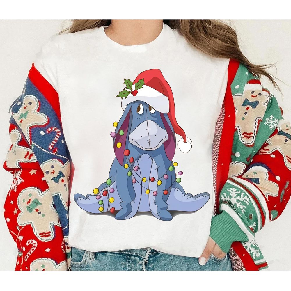 Disney Eeyore Santa Hat Christmas Lights Vuitino Shirt