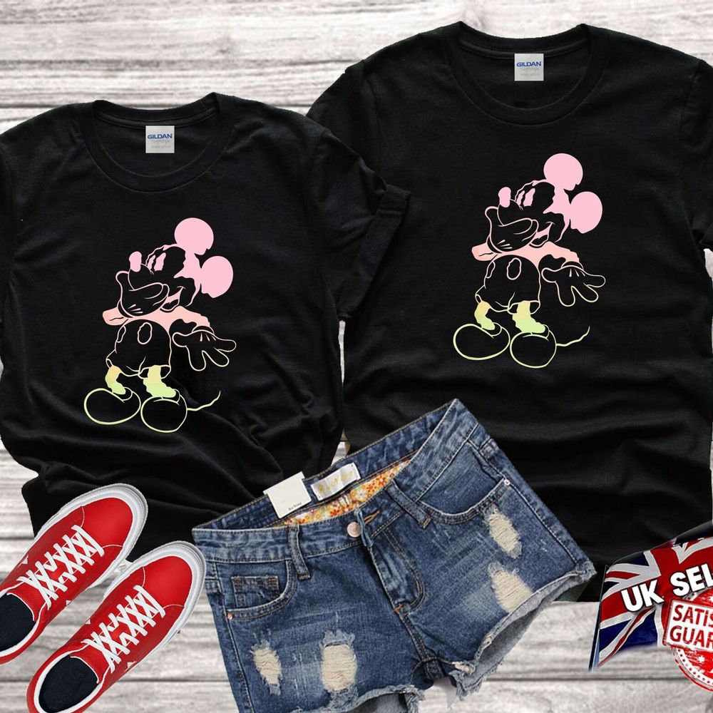 Disney Mickey Minnie Mouse Art Colorful Family Cute Vuitino Shirt