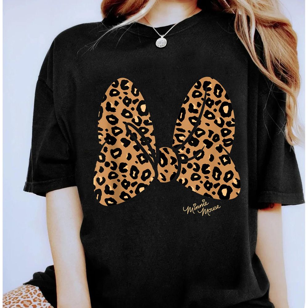 Disney Minnie Mouse Leopard Print Bow Minnie Friends Disneyland Family Matching Vuitino Shirt