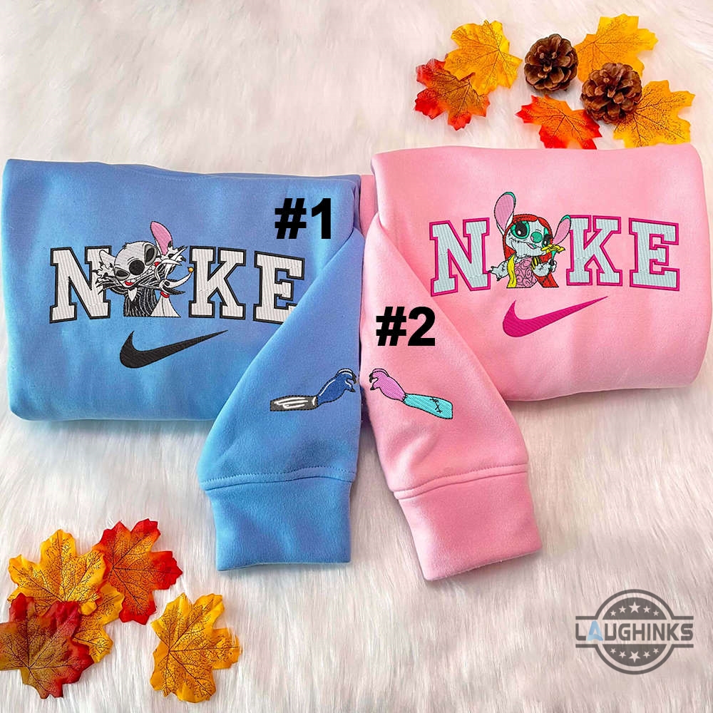 Disney Nike Stitch And Angel As Jack And Sally Embroidered Sweatshirt T Shirt Hoodie Halloween Couple Matching Shirts Laughinks 1