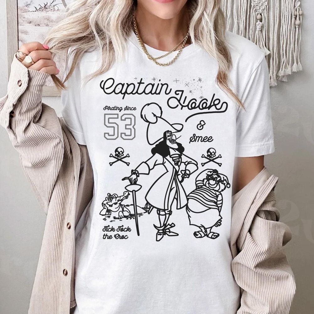 Disney Peter Pan Captain Hook And Mr Smee Outline Sketch 2 Vuitino Shirt
