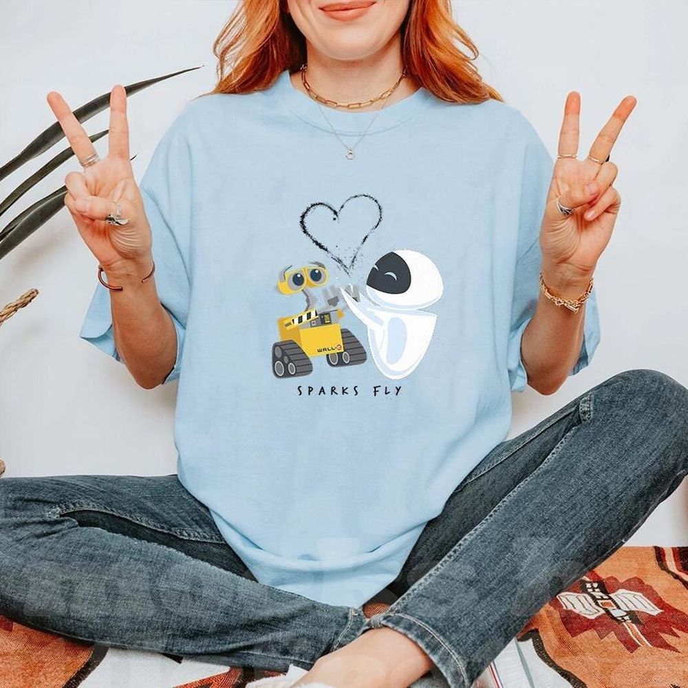 Disney Pixar Wall E And Eve Heart Sparks Fly Friendship Vuitino Shirt