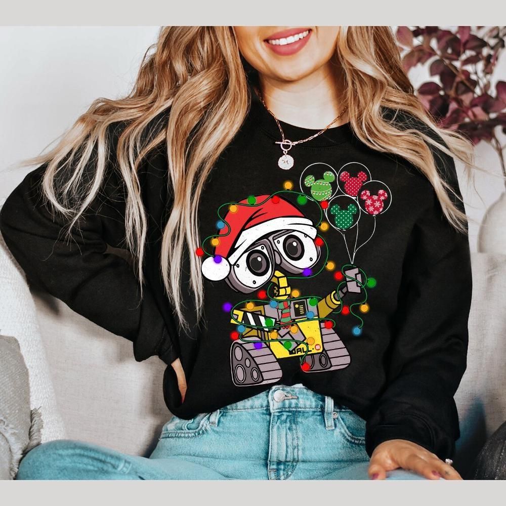 Disney Pixar Wall E Cute Santa Christmas Mickey Balloon Vuitino Shirt