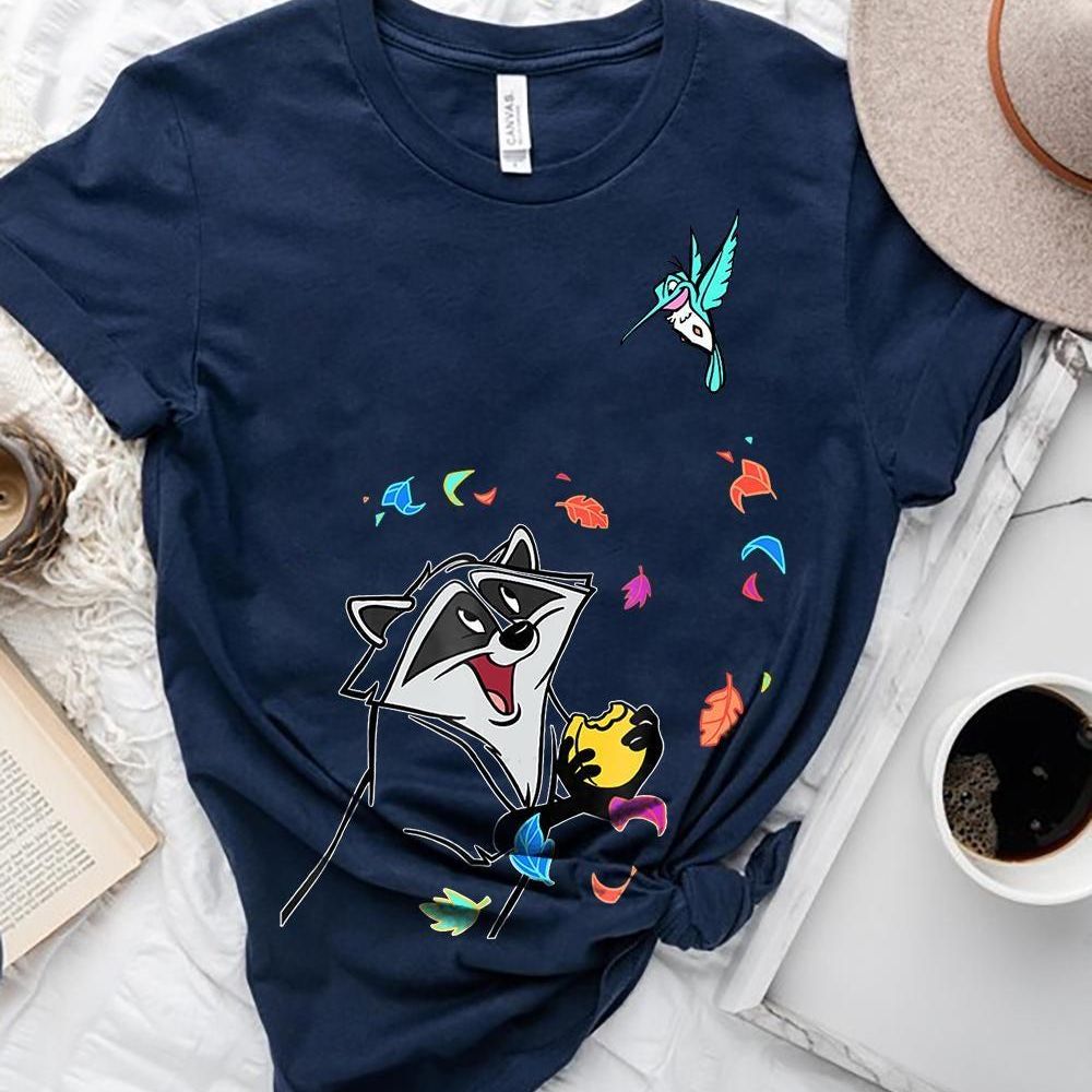 Disney Pocahontas Meeko Flit Colorful Leaf Fall Vuitino Shirt