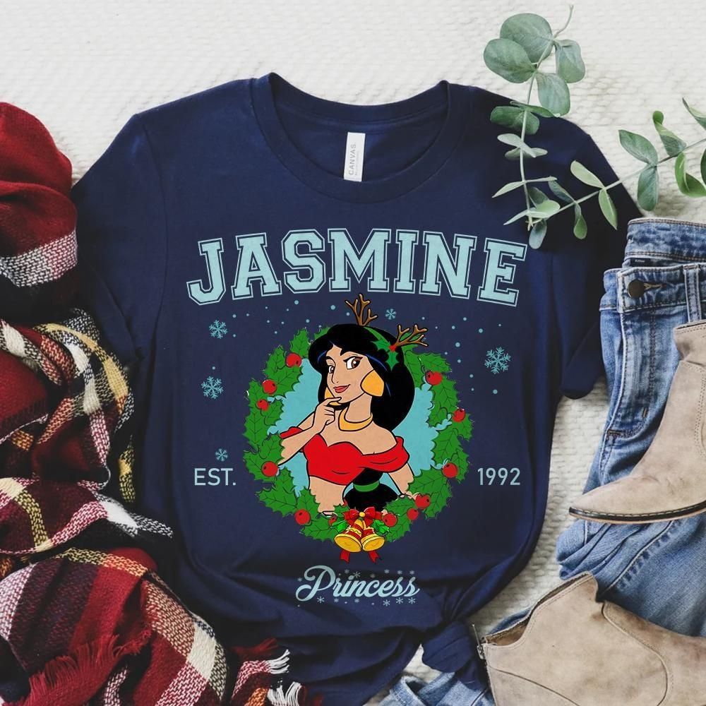Disney Princess Jasmine Christmas Wreath Est 1992 Vuitino Shirt