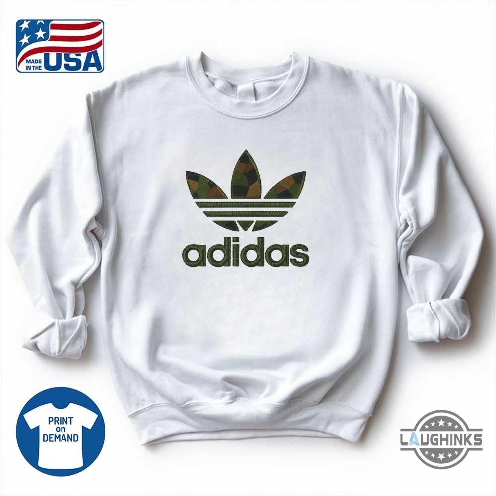 Adidas Camo Embroidered Tee Shirt Sweatshirt Hoodie