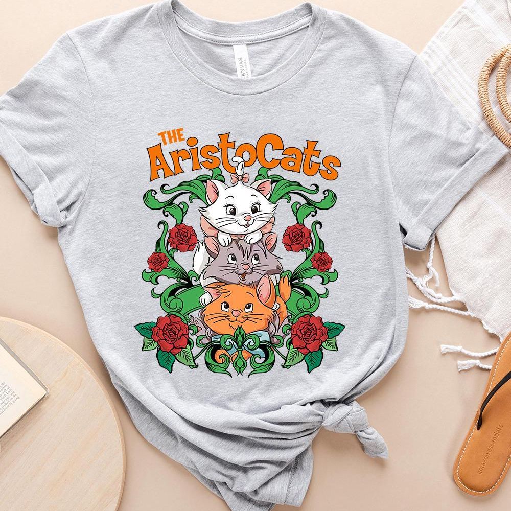 Disney The Aristocats Cute Kittens Floral Art Vuitino Shirt